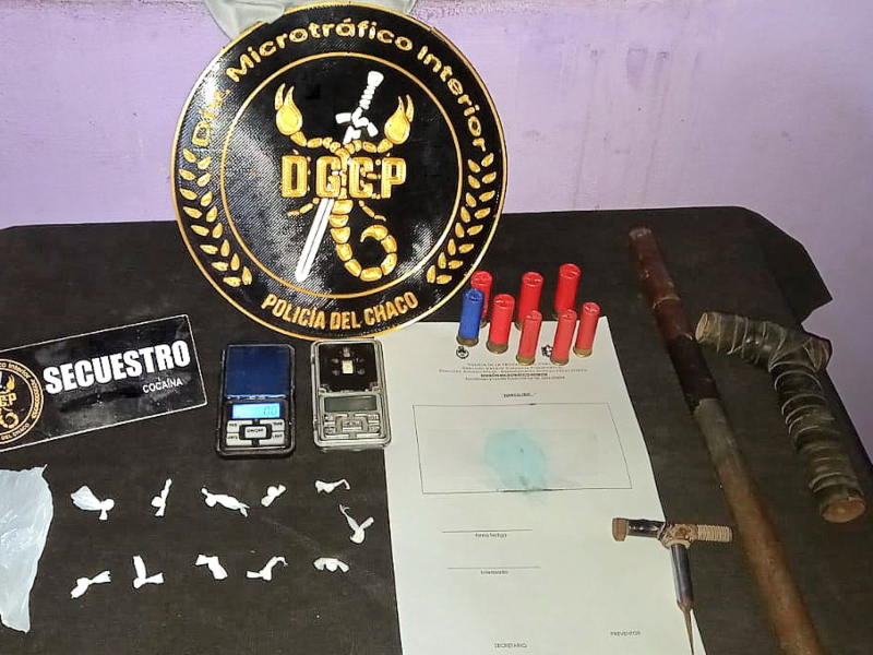 En el operativo secuestraron 11 bochitas de cocaína, 2 balanzas digitales, una tumbera con cartuchos calibre 16 y 28, y una ganzúa de hierro comúnmente utilizada para violentar llaveros de encendido en motocicletas. Detuvieron a un muchacho de 27. Ocurrió en Quitilipi.
