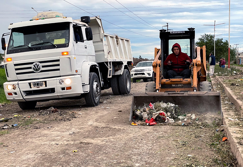 Para esta intervención están afectados unos 65 empleados municipales y equipos viales como ser camiones volcadores, bateas, minicargadoras y un tractor con desmalezadora para trabajos en los zanjones. “Es necesario que el vecino colabore, que no arroje residuos en la vía pública, que respete el horario de recolección domiciliaria”, manifestó.