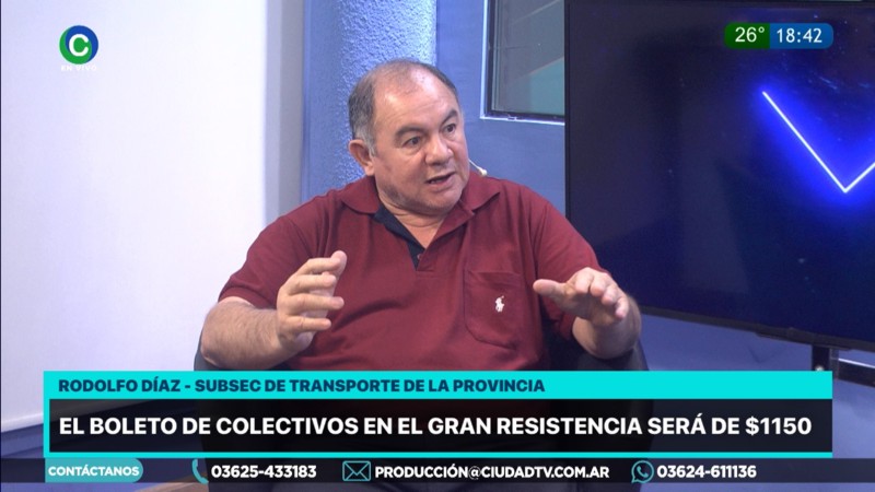 El Subsecretario de Transporte de la provincia del Chaco, Rodolfo Díaz, consideró que el gobierno hace un esfuerzo muy grande para que el precio real no afecte los bolsillos de los usuarios. En su visita a CIUDAD TV, consideró que está encaminada la cosa entre la UTA y los empresarios, y el valor del boleto iría a 1.150 pesos a mediados de mes. Habrá cambios en los recorridos. Valoró la gestión de Zdero diciendo “no para, y con su ejemplo nos lleva de las narices a nosotros”.
