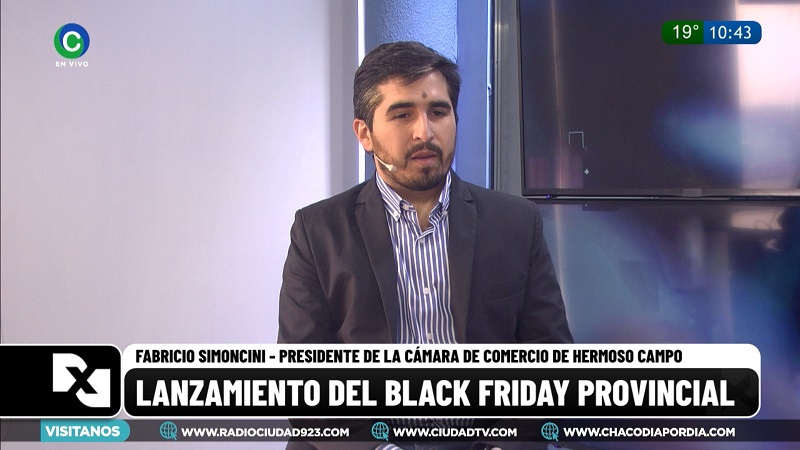 Tras participar del lanzamiento de la quinta edición del Black Friday, el evento comercial más grande de la provincia, el presidente de la Cámara de Comercio de Hermoso Campo, Fabricio Simoncini, visitó los estudios de CIUDAD TV y remarcó que las “expectativas son muy buenas” de cara al evento que se realizará el 6 y 7 de septiembre.