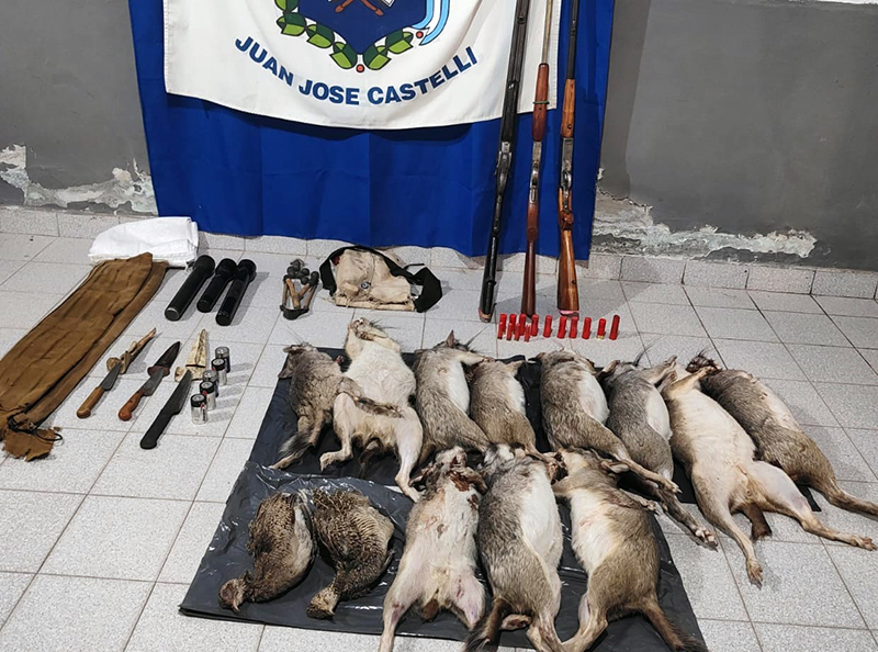 Por último, desde el Paraje Pampa Argentina del Departamento General Güemes, procedieron a identificar a tres ciudadanos de 26, 35 y 45 años que se movilizaban en un automóvil. En él, trasladaba tres escopetas calibres 12, 16 y 28, con ocho cartuchos calibre 16, cuatro calibre 12, tres linternas, tres armas blancas, 11 animales silvestres especie Vizcacha sin vida y dos aves especie Perdiz sin vida.