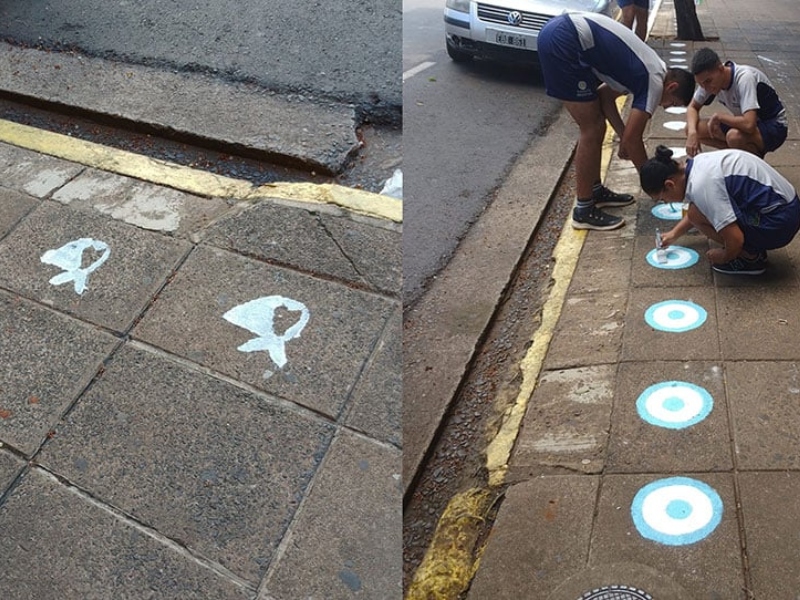 Cadetes del Ejército taparon pañuelos blancos con escarapelas en las veredas de Posadas