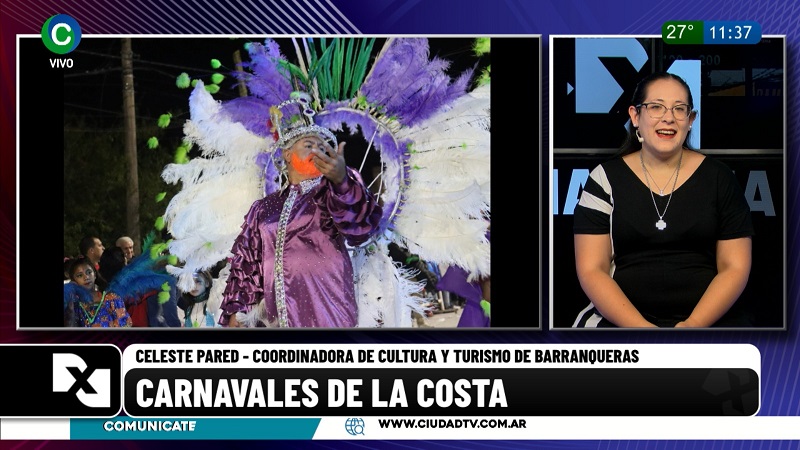 La coordinadora de Cultura y Turismo de Barranqueras, Celeste Pared, desde los estudios de CIUDAD TV invitó a la comunidad a ser parte de otra edición de los Carnavales de la Costa que se llevarán a cabo el 9 y 10 de febrero en avenida San Martín, entre las calles Los Colonizadores y León Zorrilla.