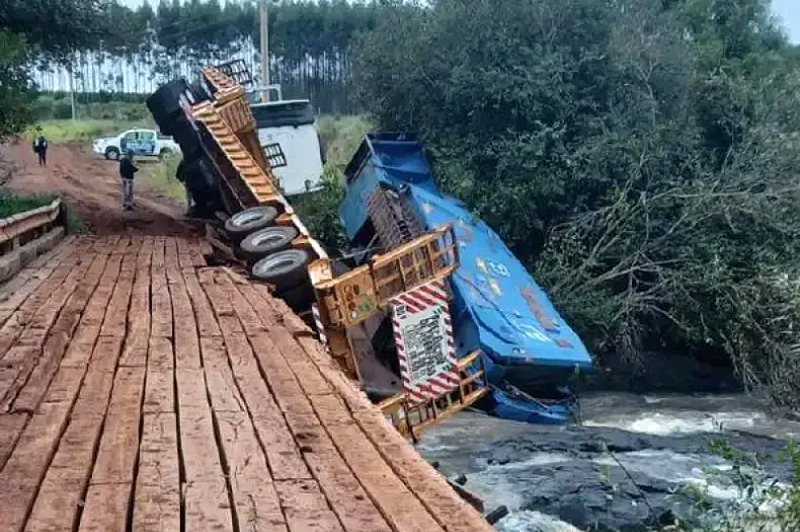 Inicio » Carretón con maquinaria pesada rompió puente y cayó sobre el arroyo Garaví