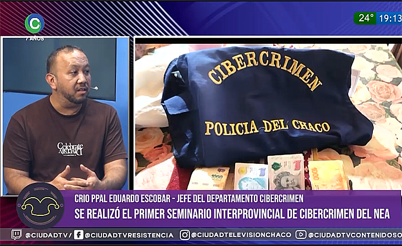 El jefe del Departamento de Cibercrimen de la Policía del Chaco, comisario principal Eduardo Escobar, visitó los estudios de CIUDAD TV para hacer un balance del seminario realizado días atrás en Resistencia. Habló de la necesidad de perfeccionarse para poder combatir los delitos tecnológicos, y mencionó los casos de estafas piramidales y los de grooming, ciberbulling, la ludopatía y la suplantación de identidad para cometer estafas o extorsiones.