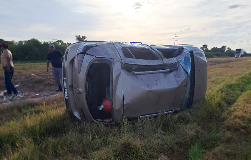 Un grave accidente de tránsito se registró este domingo alrededor de las 07:50 de la mañana sobre el kilómetro 45 de la Ruta Nacional N° 16. Un automóvil Renault Sandero, color beige, terminó volcado sobre su lateral derecho con importantes daños materiales tras una maniobra brusca en la calzada.