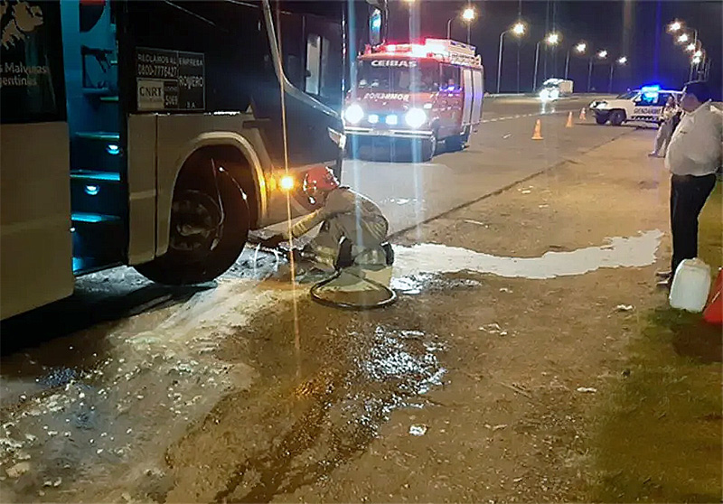 El hecho ocurrió alrededor de las 21:00 horas, cuando el colectivo, que se dirigía desde Buenos Aires a nuestra provincia se encontraba en tránsito. Según informaron Bomberos Voluntarios de la localidad de Ceibas, que intervinieron en el siniestro, el fuego se inició en la rueda delantera del lado del acompañante, a causa de un problema mecánico.