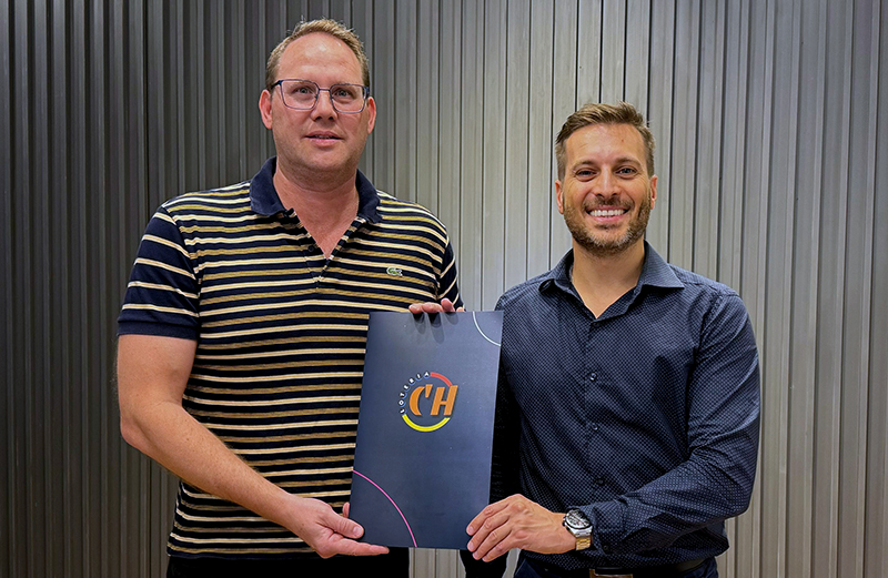 El presidente de Lotería Chaqueña, Lucas Apud Masín, junto al titular del Club Social de Las Breñas Sebastian Pertile, acordaron una importante obra para la entidad deportiva que este año cumplió su centenario en el Sudoeste chaqueño.