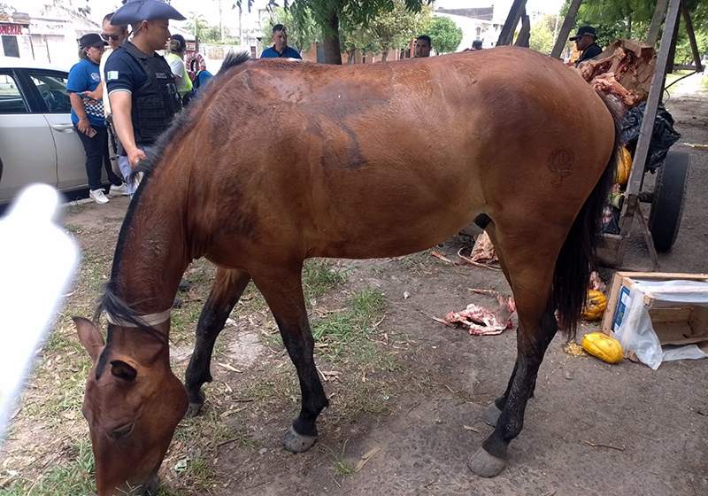 En una de las recorridas habituales, personal de guardia comunitaria, alertado por un grupo de vecinos, detectó un carro tirado por un caballo en la intersección de avenidas Hernandarias y Marconi.