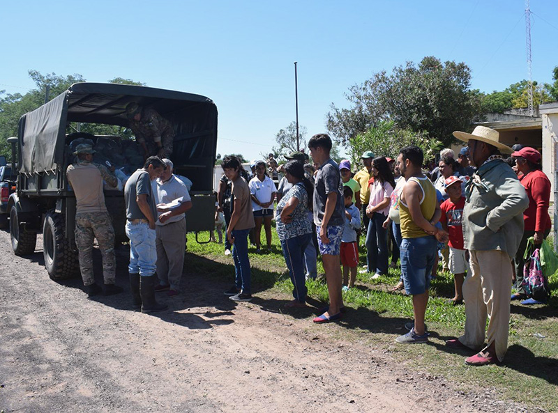 Efectivos de la Prefectura Naval Argentina y del Ejército Argentino realizaron operativos de asistencia integral, médica, sanitaria y social a familias anegadas, principalmente en parajes de la zona rural de Goya.