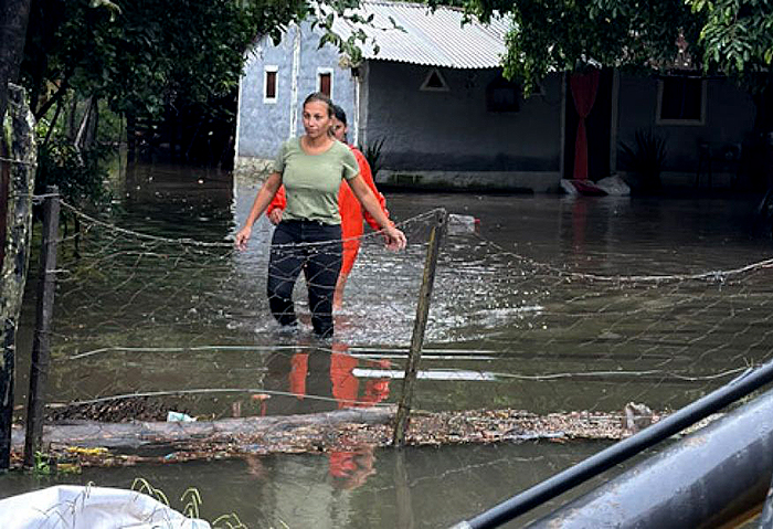 La intendente Araceli Aponte encabeza y coordina un amplio operativo junto a Bomberos Voluntarios, Policía y Defensa Civil,. Se informó que se trabaja intensamente para asistir a las familias damnificadas, realizar relevamientos y mitigar los efectos del avance del agua.