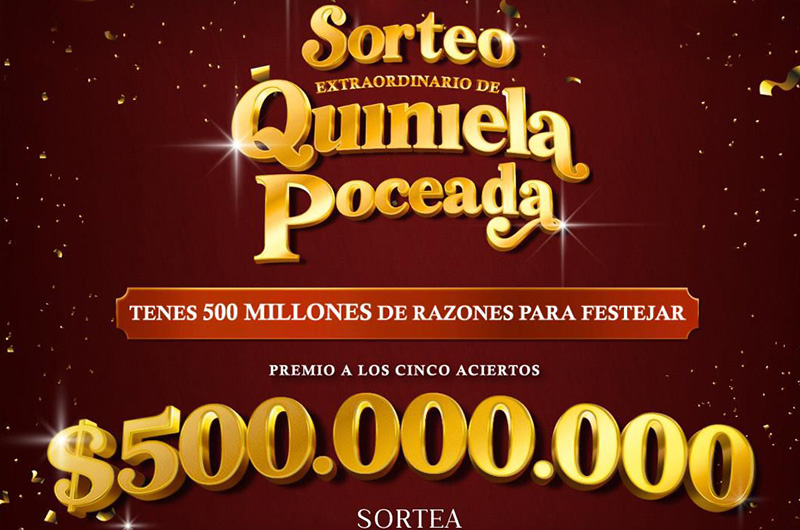 Lotería Chaqueña pondrá en juego este sábado una edición extraordinaria de su Quiniela Poceada con un primer premio asegurado de 500 millones de pesos, lo que provoca una creciente expectativa en toda la provincia.