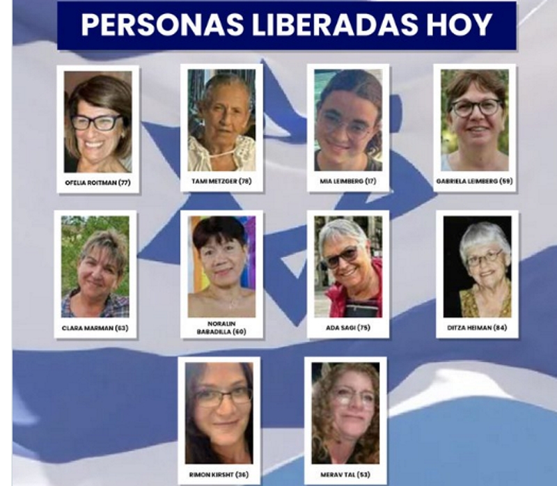La embajada de Israel en Buenos Aires informó que entre los liberados este martes están las ciudadanas argentinas Ofelia Roitman, Clara Marman, Gabriela Leimberg y Mia Leimberg.