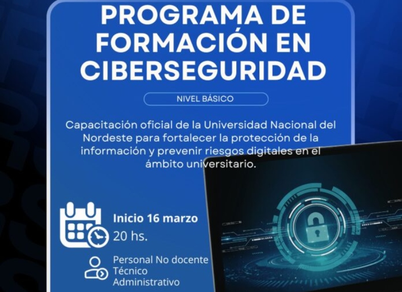 Se encuentra abierta la inscripción para los cursos en niveles básico y avanzado, que se dictará con modalidad virtual, desde el lunes 16 de marzo próximo. Está destinado a personal no docente, técnico y administrativo de la UNNE que desee adquirir o profundizar habilidades en ciberseguridad.