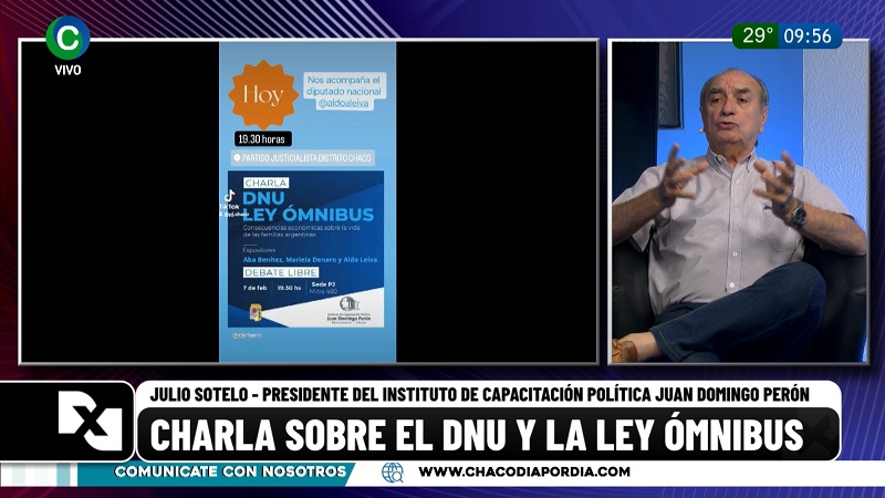 El debate libre “Consecuencias económicas sobre la vida de las familias argentinas” se realizará este miércoles desde las 19.30 horas en la sede del PJ Chaco (Mitre y Rivadavia), organizado por el Instituto de Capacitación Política Juan Domingo Perón invita. Julio Sotelo, titular del espacio, visitó los estudios de CIUDAD TV para dar detalles de la convocatoria e invitar a la comunidad a participar de una discusión de “suma importancia”.