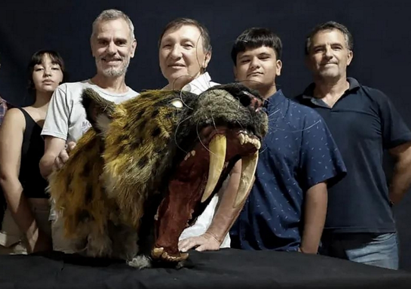 La ambientación incluye una recreación de la cabeza a escala real del “tigre dientes de sable”, realizada por el paleoartista Miguel Lugo.