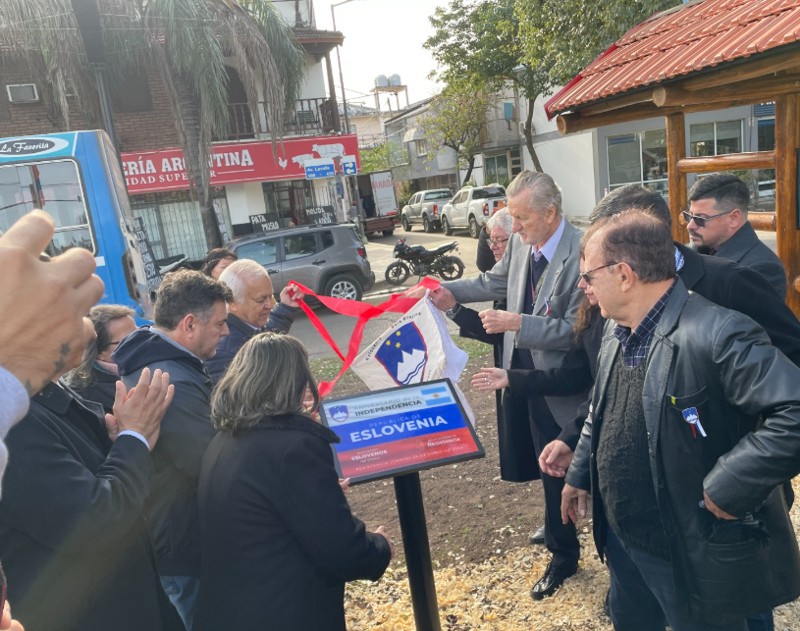 En el marco del 33° aniversario de la independencia de Eslovenia, se descubrió una placa alegórica en el parterre de ese país en la avenida Lavalle 450.