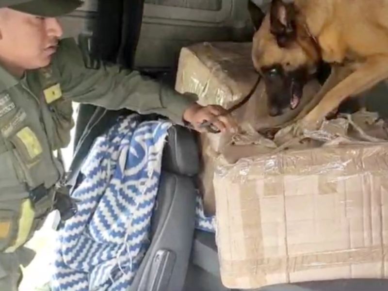 Durante una inspección de rutina, los uniformados percibieron un fuerte olor a marihuana que provenía de la cabina del rodado, por lo que en presencia de testigos y con la ayuda del can detector de narcóticos “Hiena” profundizaron la requisa.