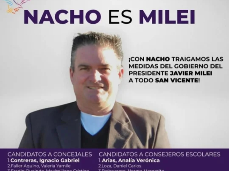 Un concejal de La Libertad Avanza fue detenido en San Vicente acusado de realizar disparos durante una discusión con su pareja. Se trata de Ignacio Contreras, quien en septiembre fue electo para ocupar dicho cargo desde diciembre de este año en la mencionada localidad.