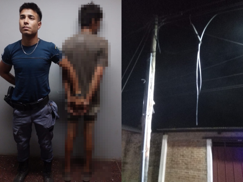 En la noche del domingo, alrededor de las 20.45, los agentes de la Comisaria Decimotercera, patrullaban por calle Machagay del barrio Don Santiago, donde observaron a un sujeto subido a un poste cortando cableado aéreo.