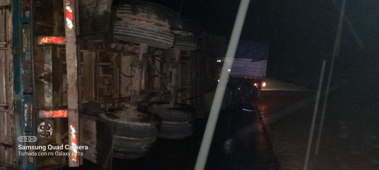 En tanto a las 23.30, en ruta 30, kilómetro 7, en la zona de Ciervo Petiso, volcó el otro camión. Se trató de un vehículo marca SALTO ACP con acoplado que trasladaba cemento.