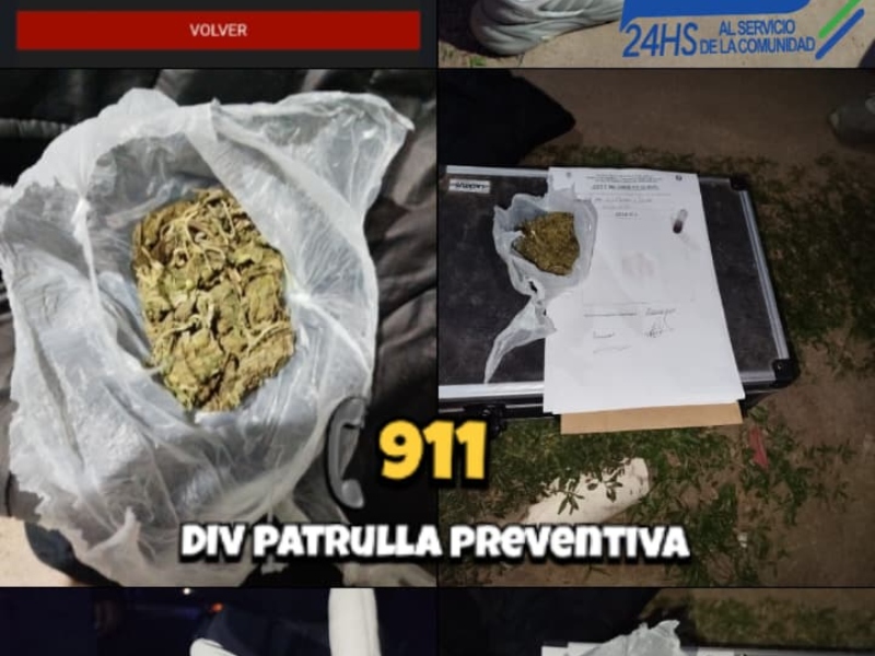 A las 22.50, en la calle Julio Cortázar 2315, los agentes identificaron a un motociclista de 21 años, quien circulaba en una motocicleta 110 cc. Entre sus pertenencias llevaba una bolsa de polietileno con una sustancia verde amarronada con olor característico a marihuana.