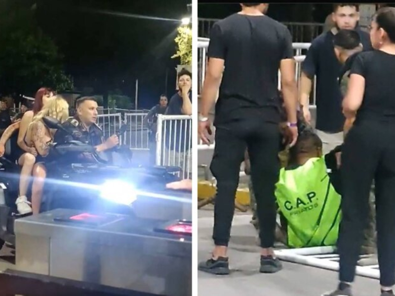 El jefe del servicio a cargo de la seguridad del recital de Los Piojos entró por la fuerza al show en un cuatriciclo en el que también iban dos mujeres. El comisario pasó a alta velocidad y atropelló a un efectivo de seguridad, quien resultó herido. Tras el incidente, fue desafectado.
