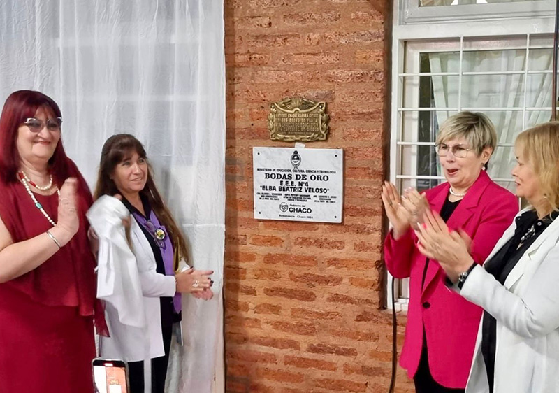 La ministra de Educación de la Provincia, Sofía Naidenoff, y la directora de la Regional 10, Estela Balbuena, acompañaron a la comunidad educativa de la Escuela de Educación Especial N°4 “Elba Beatriz Veloso” de Resistencia, en la celebración de las Bodas de Oro de esta institución. Las autoridades presentes, junto a directivos y docentes, descubrieron una placa recordatoria por los 50 años y se vivió un momento emotivo con una suelta de globos.