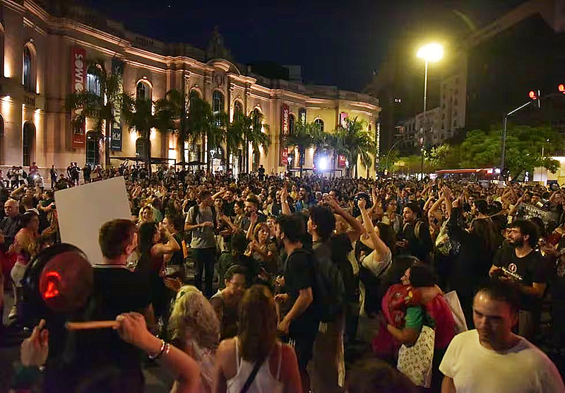 En determinado momento de la noche, aproximadamente a las 22, la presencia policial incrementó en la zona debido a la gran concurrencia de manifestantes. Luego, se produjeron enfrentamientos entre ambos sectores.