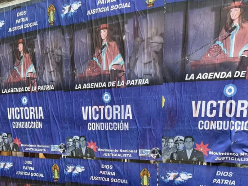 “No tenemos nada que ver. No tenemos tan mal gusto”, aseguraron respecto a los afiches con fondo azul, en los que se la ve en el centro de la escena bajo el lema “Victoria conducción”. Además, se pueden leer las leyendas “Dios, Patria y Familia”, la firma del Movimiento Justicialista Nacional y las figuras de José de San Martín, Manuel Belgrano, Juan Domingo Perón y José Ignacio Rucci.