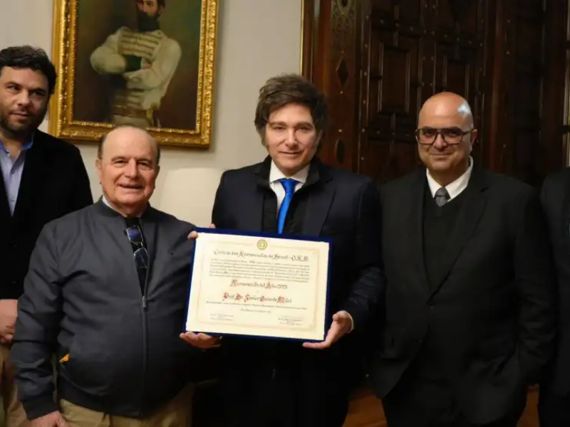 Pese a su historial, Enríquez García se presentó ayer en la Casa Rosada como titular de la Ordem dos Economistas do Brasil para otorgar a Milei el título de “Economista del Año”. En la carta entregada al Presidente, lo elogiaron por “actuar con sabiduría y determinación” en las políticas monetarias y regulatorias. La distinción se formalizará en una ceremonia en Brasil a mediados de agosto.
