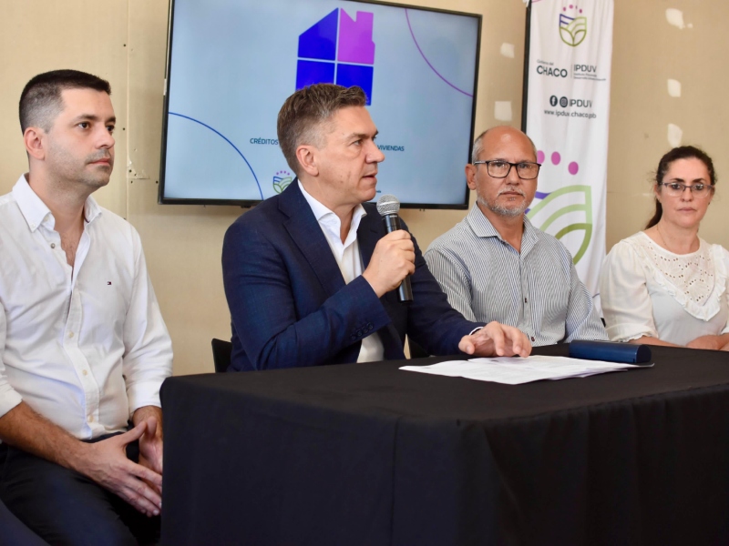 El gobernador Leandro Zdero presentó, este lunes, la nueva línea de préstamos del Instituto Provincial de Desarrollo Urbano y Vivienda (IPDUV) “Chaco a la obra”, destinada a la terminación, refacción, refuncionalización y ampliación de viviendas familiares únicas y de ocupación permanente. “Estamos dando respuesta a las demandas de la gente, fundamentalmente de esas familias chaqueñas que quieren y necesitan terminar sus viviendas”, subrayó tras lanzar la operatoria en Presidencia Roque Sáenz Peña.