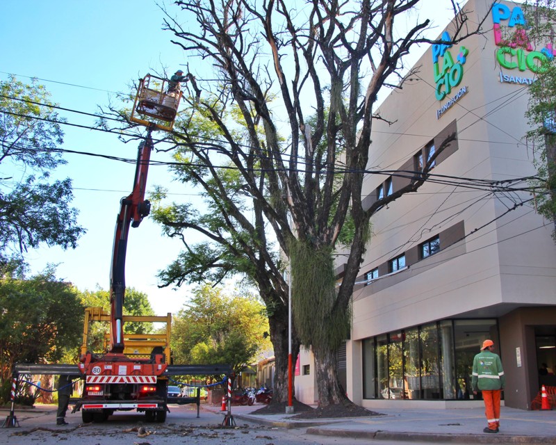 Arnaldo Gómez, Jefe de Inspección y Mantenimiento de la Dirección de Paseos y Jardines, explicó que el ejemplar se estaba totalmente seco y con peligro de caída, en la esquina donde está situado el Sanatorio Palacio. “Lo que se busca es que no haya peligro para las personas que transitan por el lugar en el caso del desprendimiento de ramas secas”, indicó.