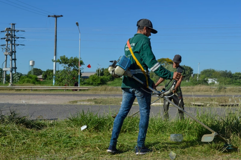 La Municipalidad de Resistencia lleva adelante tareas de desmalezado en varios puntos de la zona sur de la Ciudad. Diferentes cuadrillas de trabajadores se encargan de quitar las malezas de forma manual y con moto guadañas, además recolectan restos verdes.