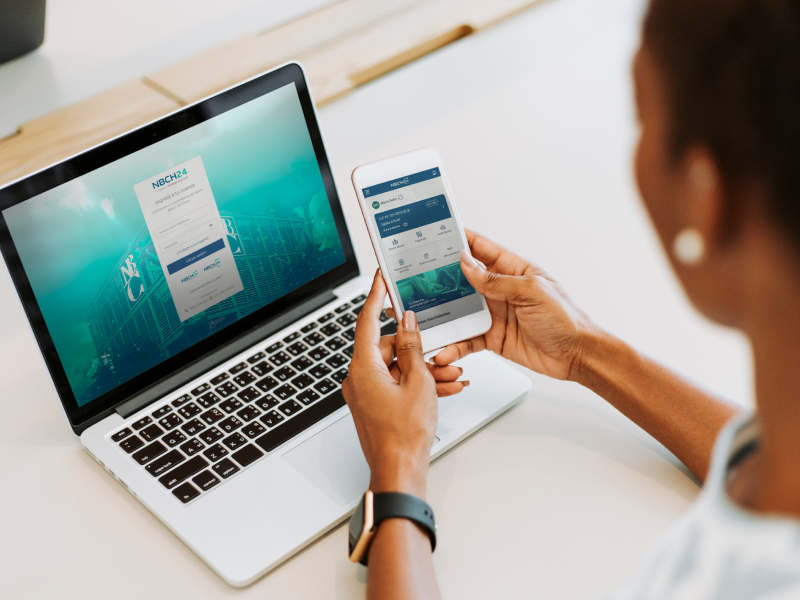 NBCH24 Online Banking está disponible las 24 horas para operar de manera fácil y segura. La aplicación para celulares NBCH24 se puede descargar en las tiendas y está habilitada las 24 horas para constituir plazo fijo, realizar pagos de servicios, transferencias, recargas y pagos con QR.