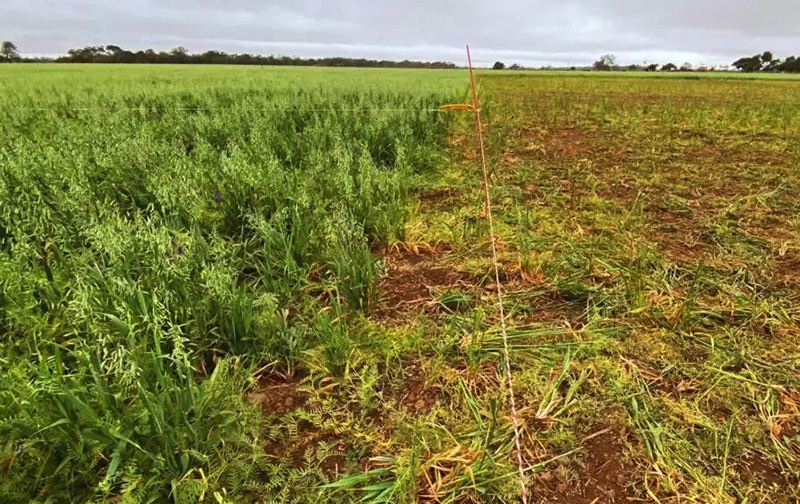 Sobre el ensayo comentó: “Instalamos cultivos de servicios con un pastoreo rotativo intensivo y en plazos muy breves, volver a la agricultura consociada. Hubo una eficiencia mayor al 70% al inicio del pastoreo, lo que se explica por la mayor calidad del forraje, mayor contenido de proteínas y menos proporción de fibras. Hacia el final del ensayo la eficiencia de pastoreo estuvo por debajo del 60%, debido a la encañazón de la avena”.