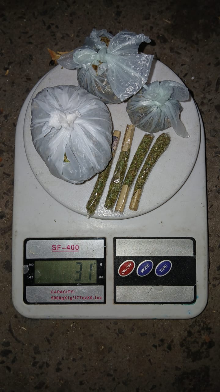 En el operativo, los efectivos tras verificaron el rodado encontraron en el baúl de la motocicleta tres envoltorios de polietileno con 31 gramos de cogollos de marihuana y cuatro cigarrillos caseros con contenido similar. Personal de la División de Consumos Problemáticos confirmó mediante pruebas que la sustancia era cannabis sativa.