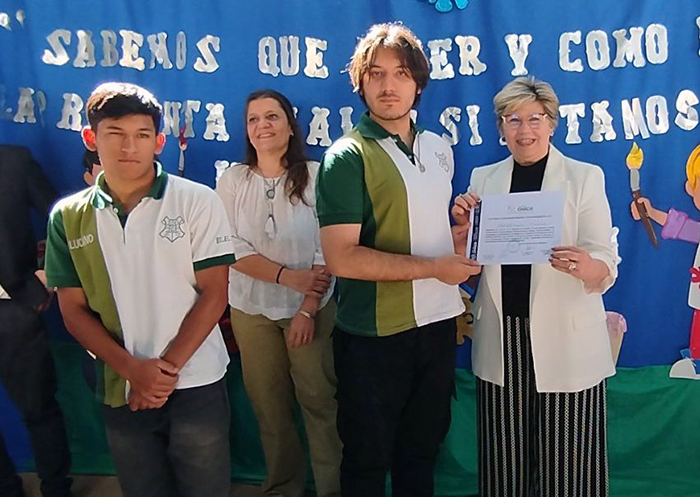La ministra de Educación, Sofía Naidenoff, encabezó este miércoles el acto de entrega de diplomas a los estudiantes de la Escuela de Educación Técnica Nº 2 “General José de San Martín” de Barranqueras, quienes fueron reconocidos por la comunidad del Jardín de Infantes Nº101 “Cristina P. de Karl” por las tareas de mantenimiento realizadas en el edificio como parte de sus prácticas profesionalizantes.