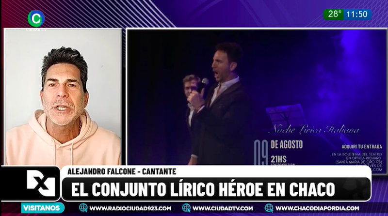 Alejandro Falcone, integrante del reconocido grupo lírico-pop Héroe, dialogó con CIUDAD TV sobre su vuelta a Resistencia y la presentación de su premiado espectáculo Noche Lírica Italiana, que se llevará a cabo el viernes 9 de agosto en el Complejo Guido Miranda.