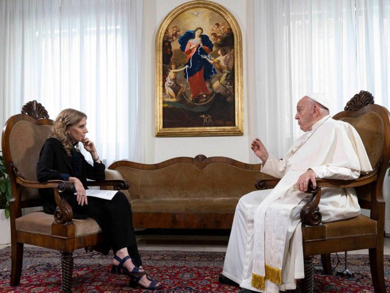 El papa Francisco fue entrevistado por la directora de la agencia Télam, Bernarda Llorente, en la Santa Sede.