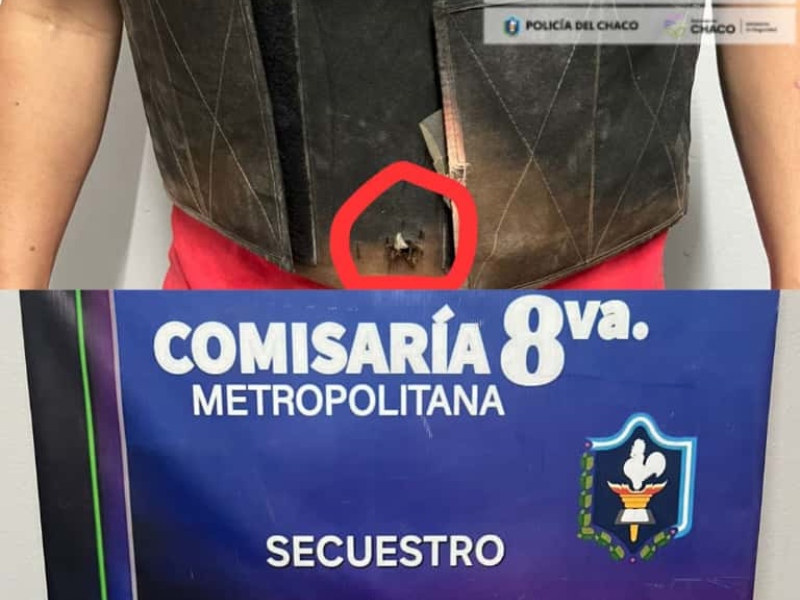 Al arribar al lugar, los uniformados observaron al hombre en la vía pública, quien al notar la presencia policial extrajo un arma blanca y lanzó varios puntazos, uno de los cuales impactó en el chaleco balístico de un empleado policial, para cubrir su huida.