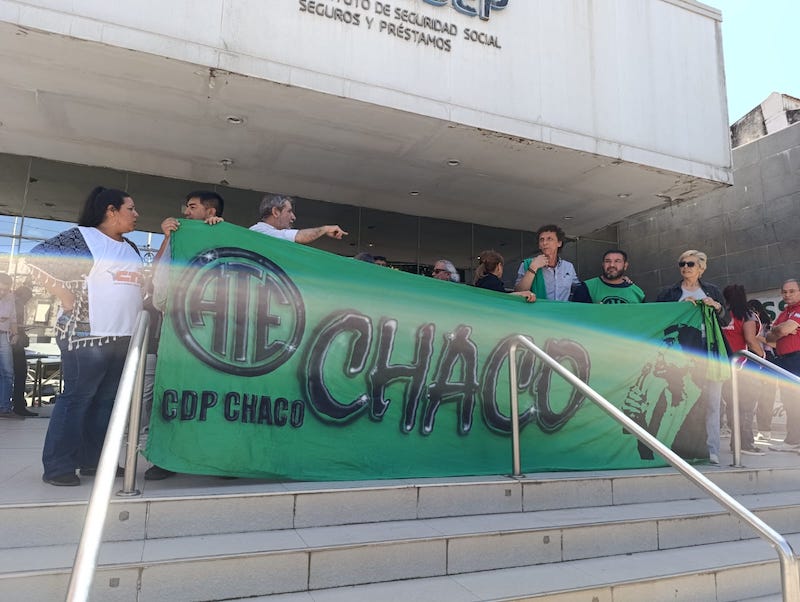 ATE Chaco participó de la jornada de protesta en el marco de la sesión extraordinaria que se realizó el viernes para tratar el proyecto de modificación del artículo 37 de la Ley 800-H, que establece el incremento en un 200% del aporte del Fondo de Alta Complejidad que posee el InSSSeP.