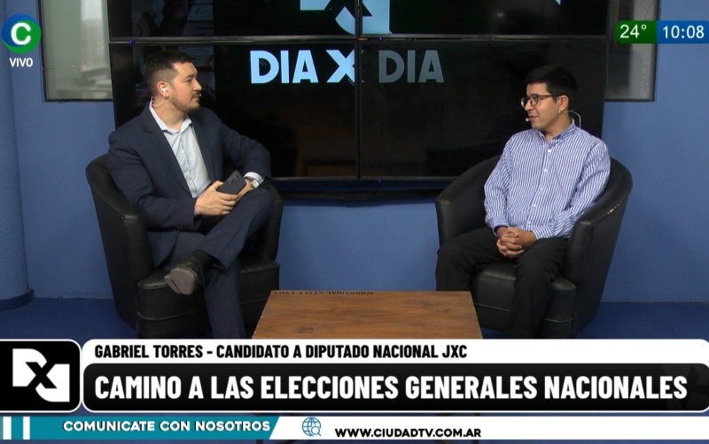 Gabriel Torres, candidato a diputado nacional de Juntos por el Cambio (JxC), visitó los estudios de CIUDAD TV en el marco de la recta final hacia los comicios generales del 22 de octubre. Habló positivamente de la campaña proselitista que lleva a Patricia Bullrich como candidata a presidenta. "Se siente el aire del cambio", dijo y celebró el triunfo de Leandro Zdero como gobernador electo.