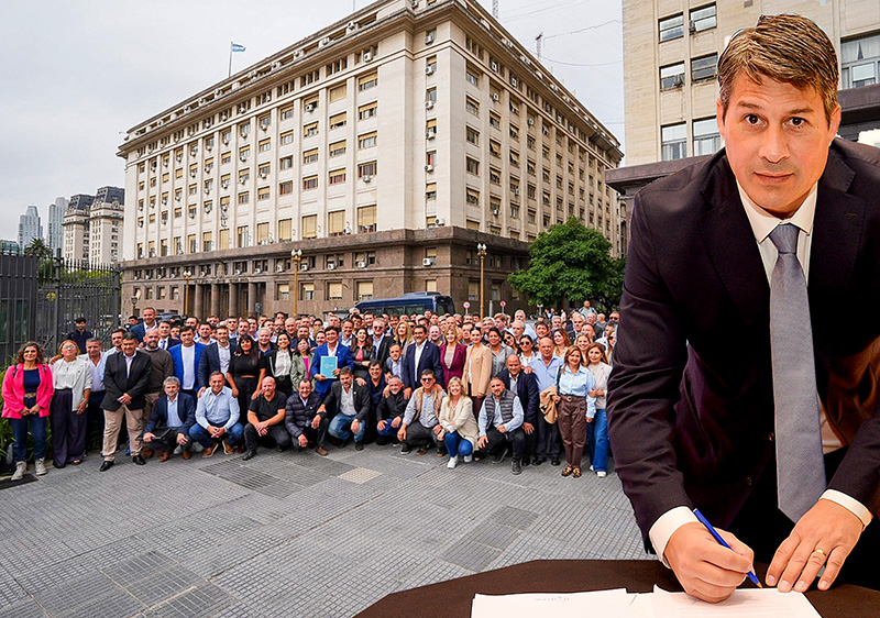 En el marco del Encuentro Nacional de Gobiernos Locales organizado por la Federación Argentina de Municipios (FAM), intendentes e intendentas de todo el país se reunieron este martes en Buenos Aires para firmar un documento dirigido al ministro de Economía, Luis Caputo. La jornada incluyó una firma de documento, una marcha al Ministerio de Economía y una sesión plenaria.