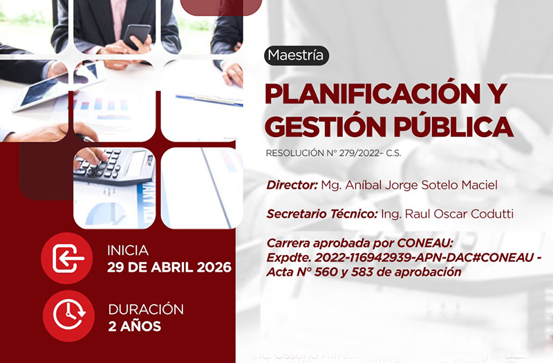 La Universidad Nacional del Chaco Austral anunció la apertura de inscripciones para la Maestría en Planificación y Gestión Pública, una propuesta de posgrado orientada a la formación de profesionales capaces de diseñar, implementar y evaluar políticas públicas en distintos niveles del Estado.