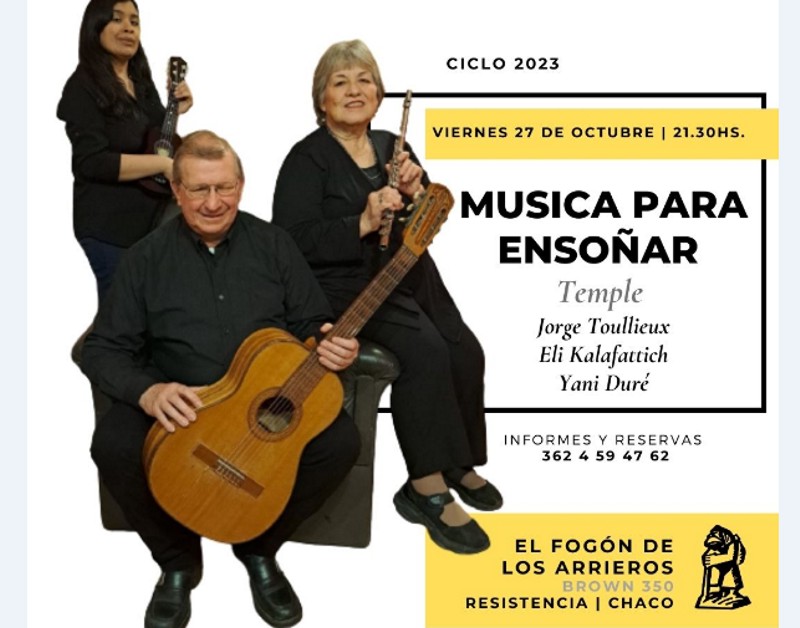 El trío propone un repertorio que incluye género folklórico y litoraleño de autores como Petecco Carabajal, Pocho Roch y Los Manseros Santiagueños, también interpretarán clásicos románticos y estilo pop que incluyen canciones de José Luis Perales, José Feliciano y Marcela Morelo, entre otros.