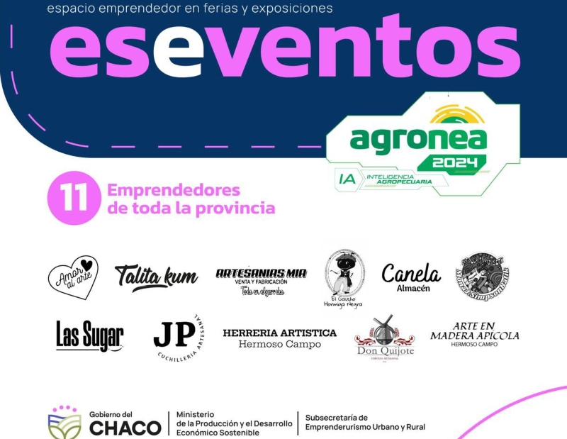 Con la asistencia de la Subsecretaría de Emprendedurismo Urbano y Rural, se desarrollará una Feria de Emprendedores en el Predio de Agronea 2024 en la localidad de Charata. En esta oportunidad, serán 11 emprendedores de Sáenz Peña, Hermoso Campo, Pinedo, Resistencia, La Escondida y Pampa del Infierno.