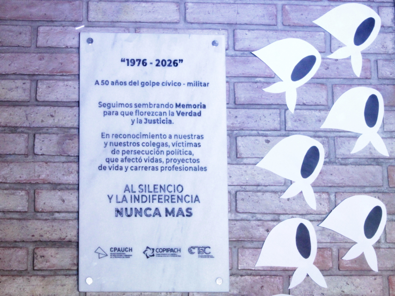Esta iniciativa —en el marco de las actividades organizadas por el 50 aniversario del golpe genocida del 24 de marzo de 1976— fue impulsada por los colegios de Arquitectura, de Ingeniería y de Técnicos, y contó con la adhesión de la Comisión Provincial por la Memoria Chaco. Desde la CPM destacaron que, a 50 años del golpe de Estado en Argentina, hacer memoria, reflexionar y reafirmar el compromiso con la democracia, los derechos humanos y la construcción de una sociedad más justa constituye una tarea permanente.
