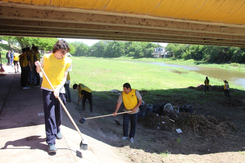 Se recolectaron residuos a la vera del río Negro, pintura de escaleras y un mural en el puente de Los Inmigrantes. El Municipio acompañó con los recipientes, hidratación y el programa de nutrición saludable.