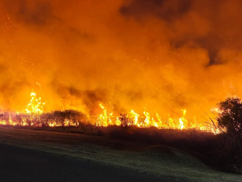 Desde la Jefatura de Policía del Chaco, a las 21.15 de este jueves brindaron un panorama del feroz fuego en el predio del Aeropuerto de Resistencia causado por el incendio de pastizales que provocó llamas de grandes dimensiones.